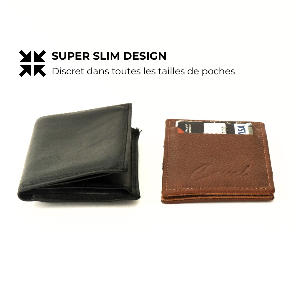 Plus plat qu’un portefeuille slim classique, nos utilisateurs réduisent de moitié l’encombrement de leur ancien portefeuille.